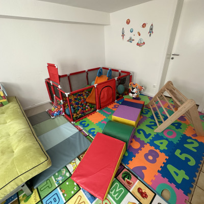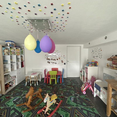 Ich arbeite in diesen Räumlichkeiten mit meiner Kollegin zusammen, die ebenfalls fünf Kinder betreut. Jede von uns hat zwei Zimmer für ihre jeweilige Gruppe zur Verfügung, was eine ruhige und überschaubare Atmosphäre für die Kinder schafft. Die gemeinsame Nutzung der Küche und des Badezimmers ermöglicht uns einen flexiblen Alltag, in dem wir die Kinder individuell begleiten und in ihren Bedürfnissen unterstützen können.
